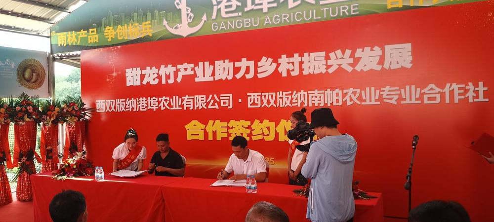 同频共振谋发展,帮农致富产业兴同频共振谋发展,帮农致富产业兴 ——西双版纳港埠农业甜龙竹种植项目与西双版纳 南帕农业专业合作社合作签约仪式圆满成功 2023年5月25日上午,西双版纳港埠商务集团有限公司牵头主办的西双版纳港埠农业甜龙竹种植项目与西双版纳南帕农业专业合作社合作签约仪式圆满成功。西双版纳州农垦局、西双版纳州农业农村局、景洪市农业农村局、景洪市林业和草原局、景洪市农垦集团、景洪农场等单位代表;云南省竹藤产业协会副理事长,西南林业大学博士生导师杜凡教授,亲临现场参加合作签约仪式。